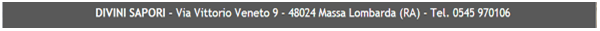 DIVINI SAPORI È un piccolo ma grazioso ristorantino da asporto ,situato all’inizio del corso principale di massa lombarda. Il ristorantino molto caratteristico ,si presenta in una piccolissima sala , dove a ricevervi c'è barbara che con molta attenzione vi saprà consigliare tra le numerose proposte del menu. La nostra è una cucina tradizionale , che propone piatti sani e genuini sia di carne che di pesce . Il cuoco Mario, con tanta passione per il cibo e per la cucina ,mette a frutto tutta la sua esperienza maturata negli anni; proponendovi una cucina con piatti veloci, ma elaborati preparati al momento, per offrirvi il massimo del gusto e il piacere di assaporare un piatto preparato solo per voi. Il tutto con semplicita , cortesia e simpatia in un luogo accogliente e familiare |